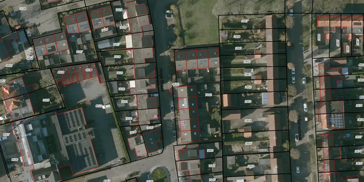 Het perceel waarop Hoge Braak 9 staat heeft een oppervlakte van 1323 m². Dit is een zeer groot perceel. De perceeloppervlakte wordt geregistreerd door het Kadaster. Gedetailleerde informatie over de maten van dit perceel kunt u vinden in het rapport Kadastrale kaart met maatvoering van Hoge Braak 9.