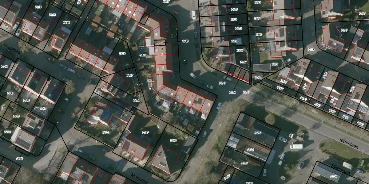 Iepenlaan 7 is gelegen op kadastraal perceel HSR00C8449. Deze kadastrale aanduiding is uniek en wordt gebruikt door het Kadaster om eigendomsrechten en andere zakelijke rechten vast te leggen. Het perceel maakt onderdeel uit van de kadastrale gemeente Halsteren.