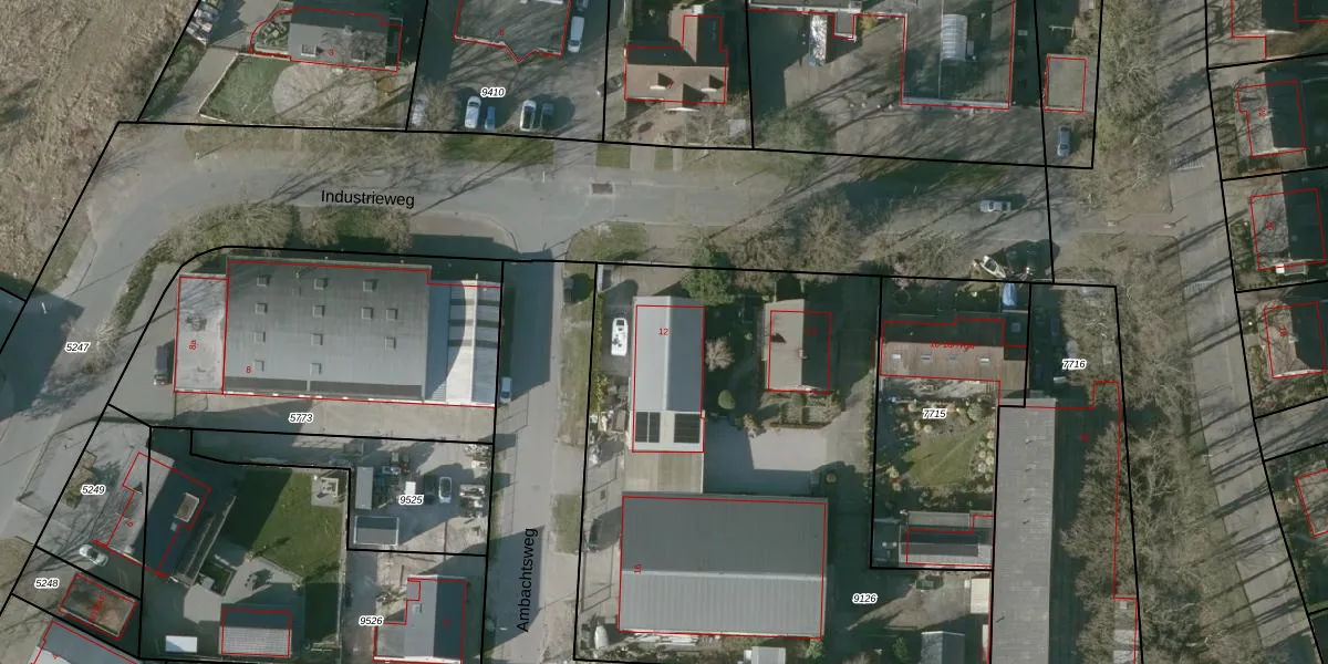 Het perceel waarop Industrieweg 12 staat heeft een oppervlakte van 4000 m². Dit is een zeer groot perceel. De perceeloppervlakte wordt geregistreerd door het Kadaster. Gedetailleerde informatie over de maten van dit perceel kunt u vinden in het rapport Kadastrale kaart met maatvoering van Industrieweg 12.