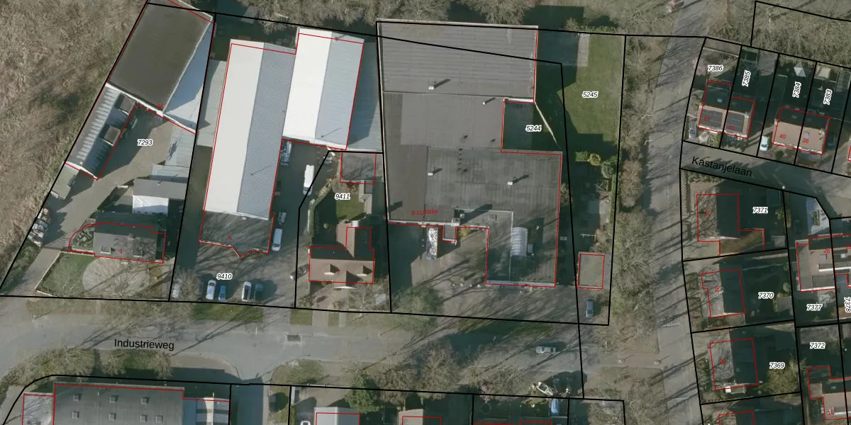 Het perceel waarop Industrieweg 9 staat heeft een oppervlakte van 2734 m². Dit is een zeer groot perceel. De perceeloppervlakte wordt geregistreerd door het Kadaster. Gedetailleerde informatie over de maten van dit perceel kunt u vinden in het rapport Kadastrale kaart met maatvoering van Industrieweg 9.