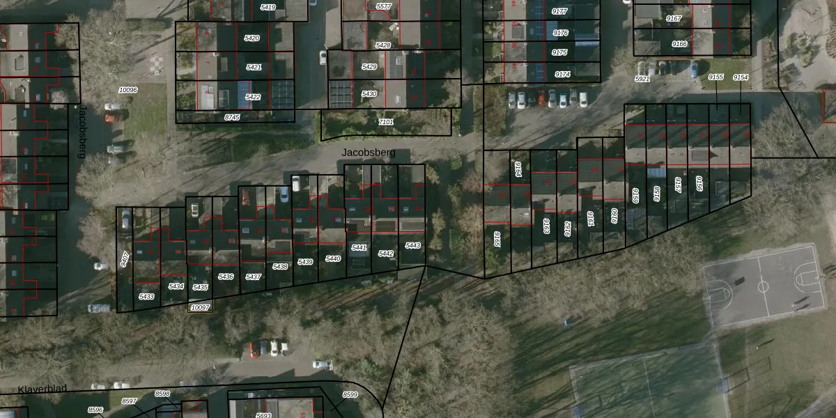 Het perceel waarop Jacobsberg 30 staat heeft een oppervlakte van 159 m². Dit is een middelgroot perceel. De perceeloppervlakte wordt geregistreerd door het Kadaster. Gedetailleerde informatie over de maten van dit perceel kunt u vinden in het rapport Kadastrale kaart met maatvoering van Jacobsberg 30.