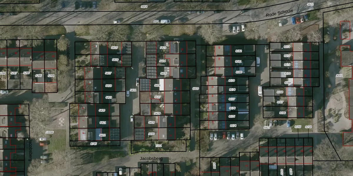 Het perceel waarop Jacobsberg 35 staat heeft een oppervlakte van 197 m². Dit is een middelgroot perceel. De perceeloppervlakte wordt geregistreerd door het Kadaster. Gedetailleerde informatie over de maten van dit perceel kunt u vinden in het rapport Kadastrale kaart met maatvoering van Jacobsberg 35.