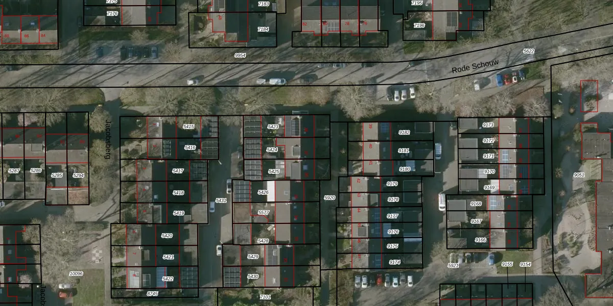 Het perceel waarop Jacobsberg 37 staat heeft een oppervlakte van 198 m². Dit is een middelgroot perceel. De perceeloppervlakte wordt geregistreerd door het Kadaster. Gedetailleerde informatie over de maten van dit perceel kunt u vinden in het rapport Kadastrale kaart met maatvoering van Jacobsberg 37.
