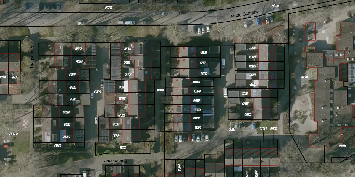 Jacobsberg 43 is gelegen op kadastraal perceel HSR00C9178. Deze kadastrale aanduiding is uniek en wordt gebruikt door het Kadaster om eigendomsrechten en andere zakelijke rechten vast te leggen. Het perceel maakt onderdeel uit van de kadastrale gemeente Halsteren.