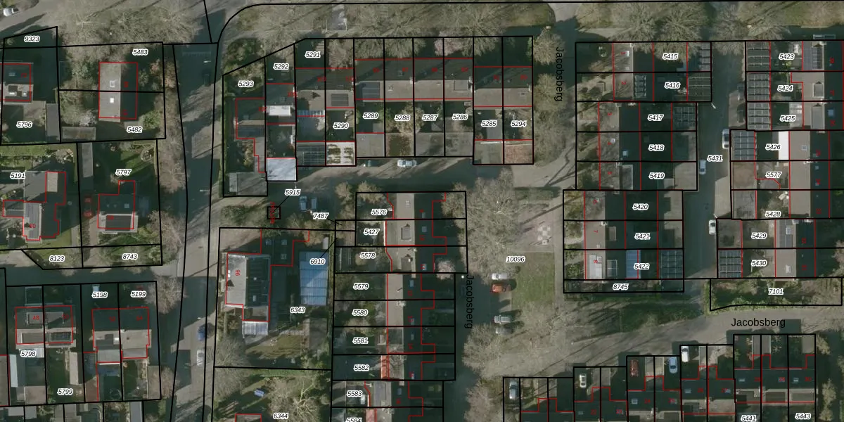 Het perceel waarop Jacobsberg 9 staat heeft een oppervlakte van 167 m². Dit is een middelgroot perceel. De perceeloppervlakte wordt geregistreerd door het Kadaster. Gedetailleerde informatie over de maten van dit perceel kunt u vinden in het rapport Kadastrale kaart met maatvoering van Jacobsberg 9.