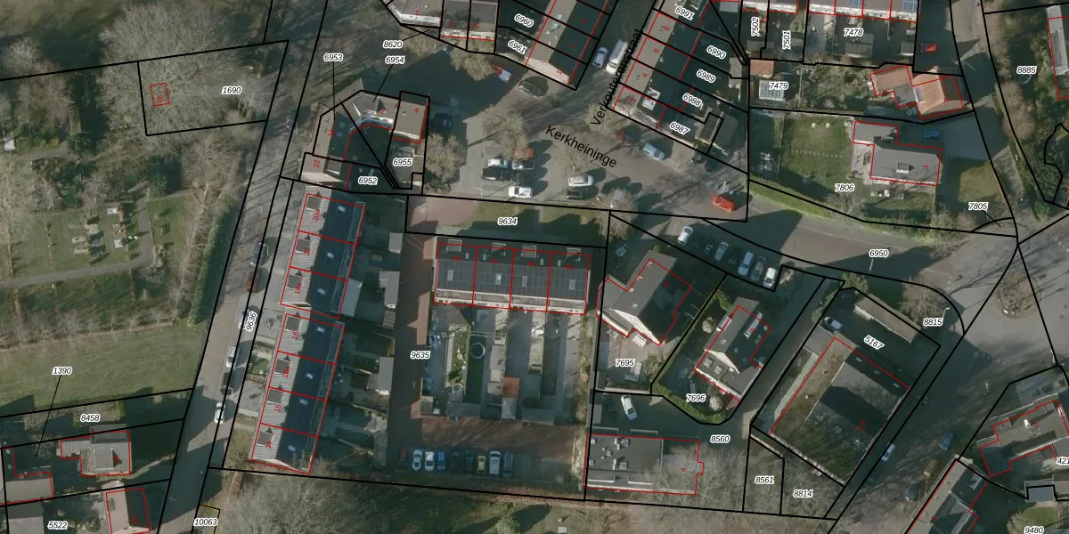 Het perceel waarop Kerkheininge 4-c staat heeft een oppervlakte van 3189 m². Dit is een zeer groot perceel. De perceeloppervlakte wordt geregistreerd door het Kadaster. Gedetailleerde informatie over de maten van dit perceel kunt u vinden in het rapport Kadastrale kaart met maatvoering van Kerkheininge 4-c.