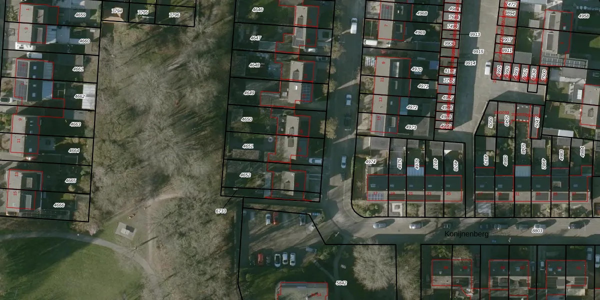 Gebruik de zoekbalk of klik op een perceel voor informatie over de adressen binnen dit perceel.
