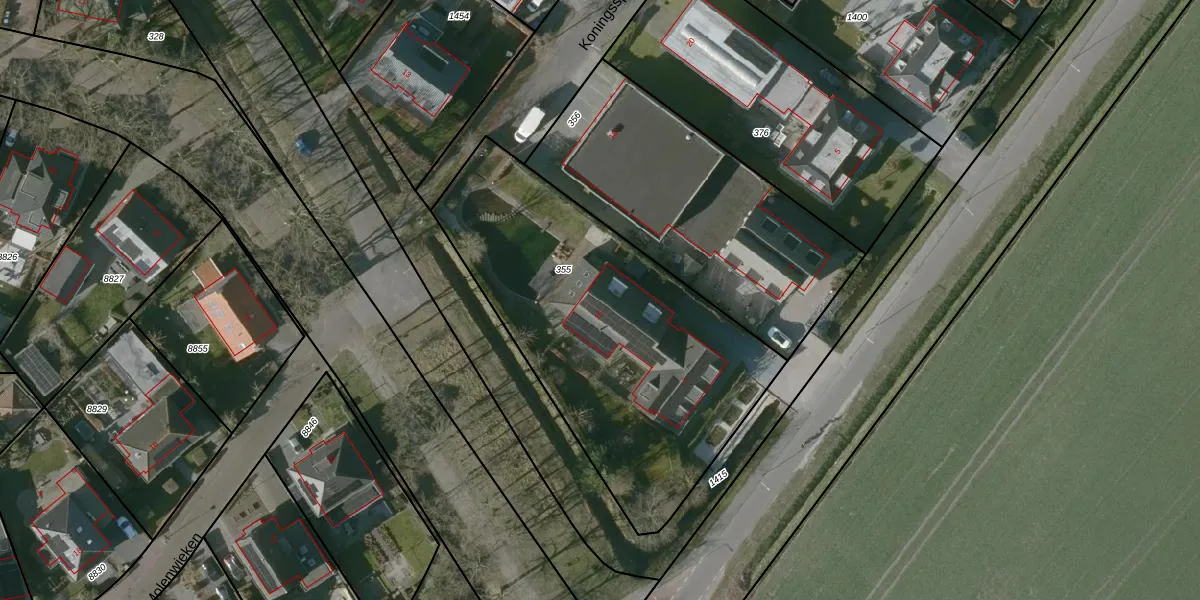 Het perceel waarop Koningsspil 16 staat heeft een oppervlakte van 1710 m². Dit is een zeer groot perceel. De perceeloppervlakte wordt geregistreerd door het Kadaster. Gedetailleerde informatie over de maten van dit perceel kunt u vinden in het rapport Kadastrale kaart met maatvoering van Koningsspil 16.