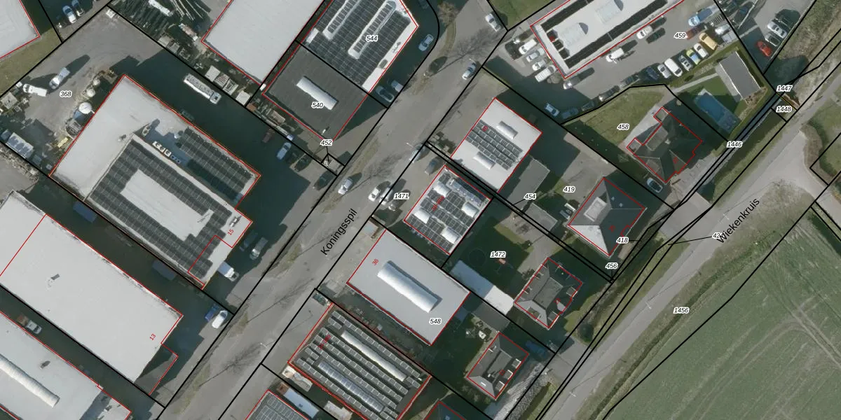 Het perceel waarop Koningsspil 38 staat heeft een oppervlakte van 447 m². Dit is een groot perceel. De perceeloppervlakte wordt geregistreerd door het Kadaster. Gedetailleerde informatie over de maten van dit perceel kunt u vinden in het rapport Kadastrale kaart met maatvoering van Koningsspil 38.