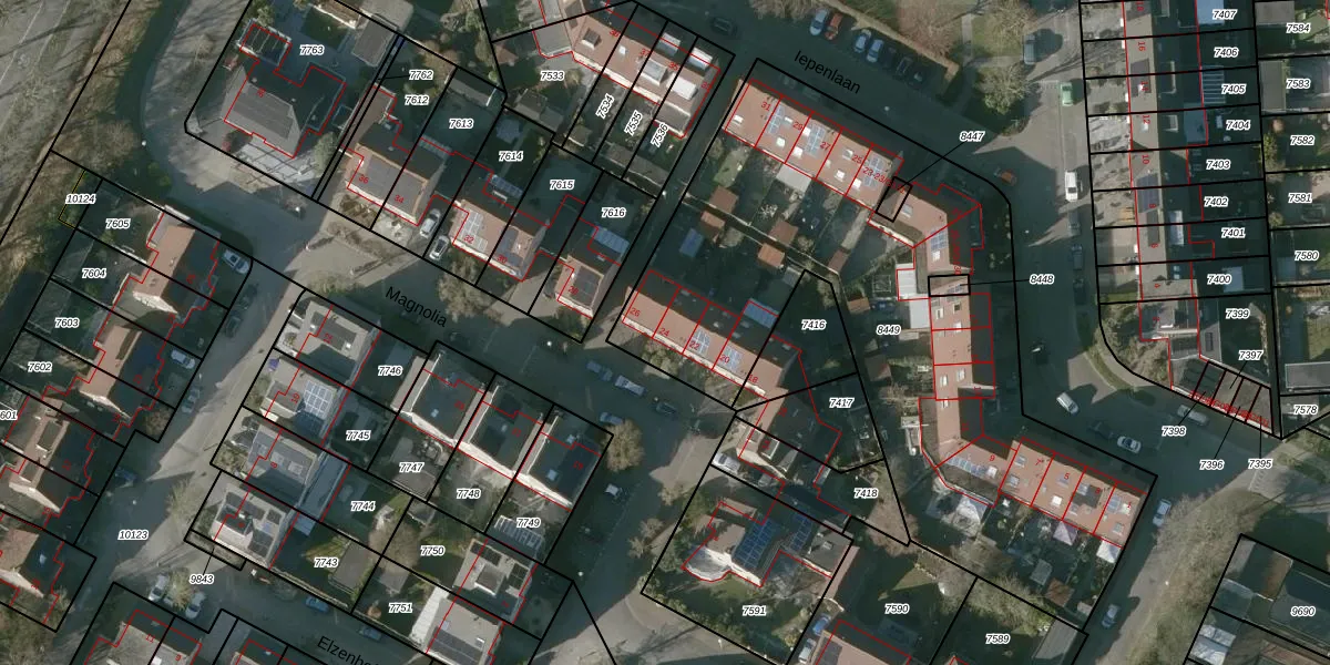 Het perceel waarop Magnolia 24 staat heeft een oppervlakte van 2864 m². Dit is een zeer groot perceel. De perceeloppervlakte wordt geregistreerd door het Kadaster. Gedetailleerde informatie over de maten van dit perceel kunt u vinden in het rapport Kadastrale kaart met maatvoering van Magnolia 24.