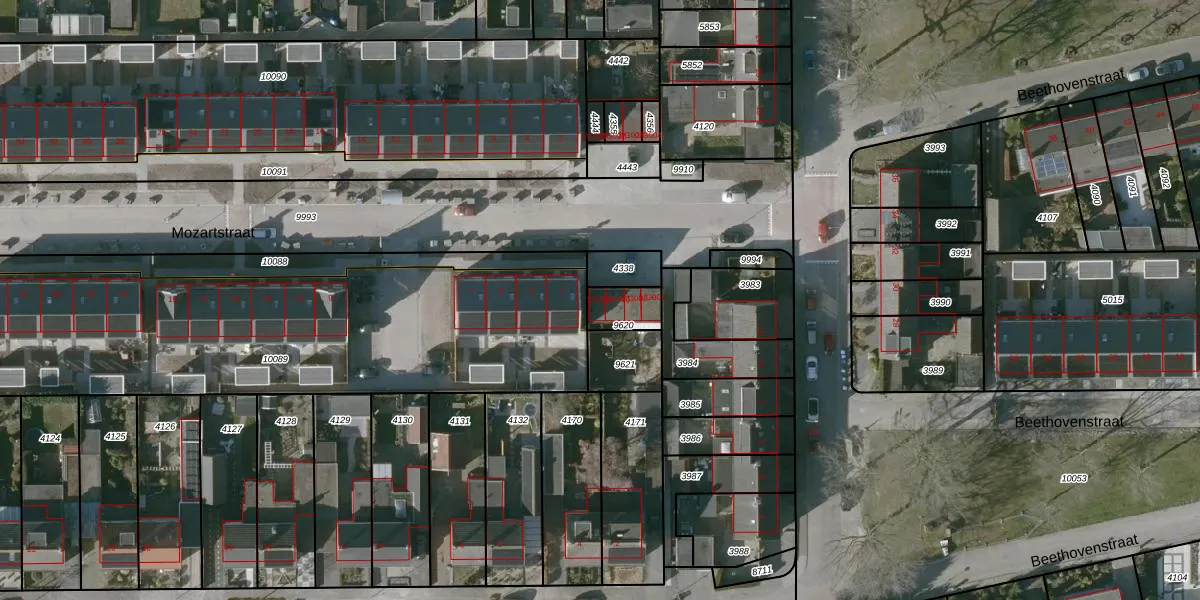 Mozartstraat 1-G004 is gelegen op kadastraal perceel HSR00C9620. Deze kadastrale aanduiding is uniek en wordt gebruikt door het Kadaster om eigendomsrechten en andere zakelijke rechten vast te leggen. Het perceel maakt onderdeel uit van de kadastrale gemeente Halsteren.
