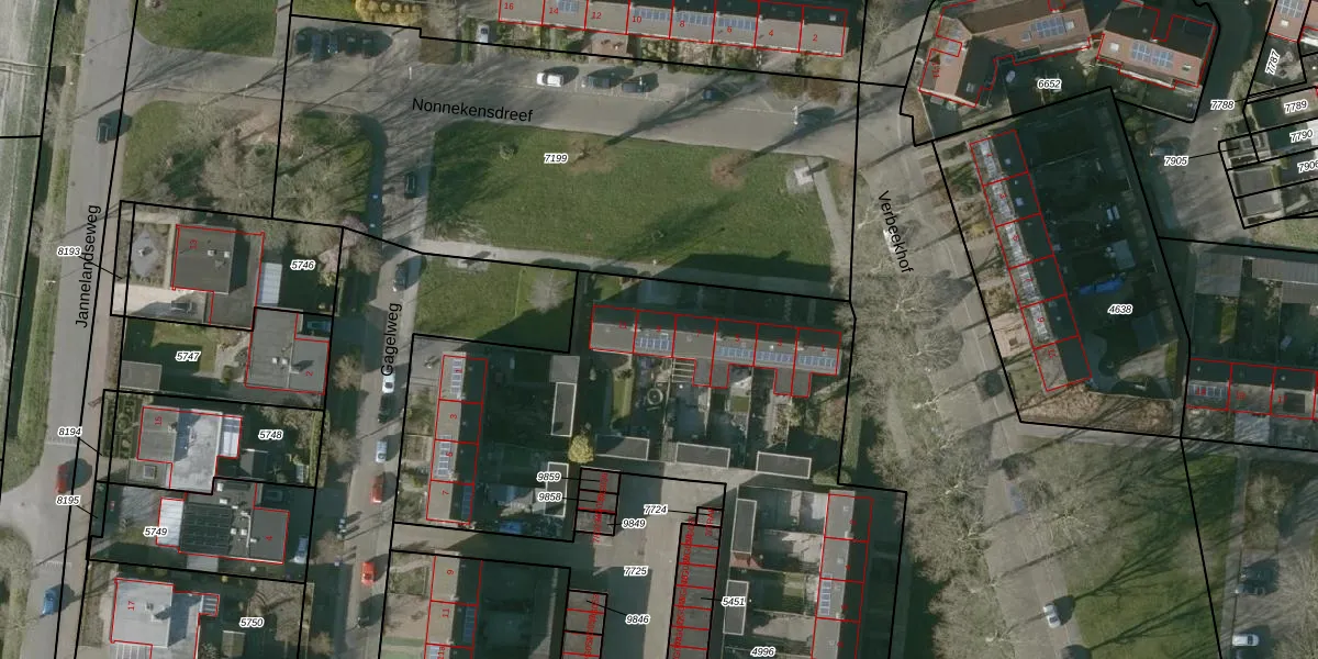 Nonnekensdreef 9 is gelegen op kadastraal perceel HSR00C4996. Deze kadastrale aanduiding is uniek en wordt gebruikt door het Kadaster om eigendomsrechten en andere zakelijke rechten vast te leggen. Het perceel maakt onderdeel uit van de kadastrale gemeente Halsteren.