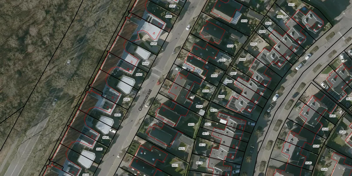 Het perceel waarop Olmenstraat 24 staat heeft een oppervlakte van 269 m². Dit is een middelgroot perceel. De perceeloppervlakte wordt geregistreerd door het Kadaster. Gedetailleerde informatie over de maten van dit perceel kunt u vinden in het rapport Kadastrale kaart met maatvoering van Olmenstraat 24.
