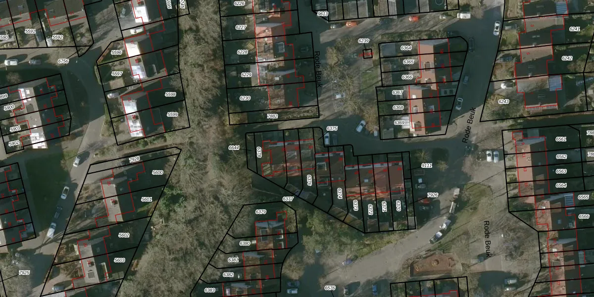 Gebruik de zoekbalk of klik op een perceel voor informatie over de adressen binnen dit perceel.