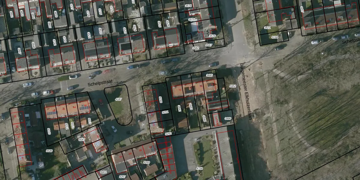 Gebruik de zoekbalk of klik op een perceel voor informatie over de adressen binnen dit perceel.