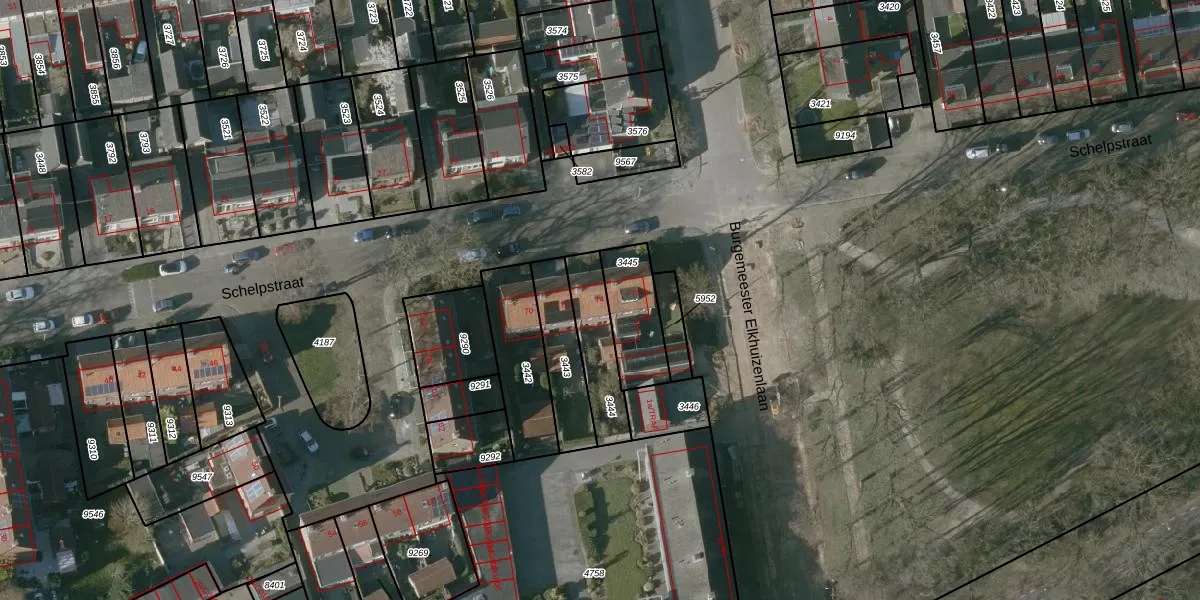 Gebruik de zoekbalk of klik op een perceel voor informatie over de adressen binnen dit perceel.