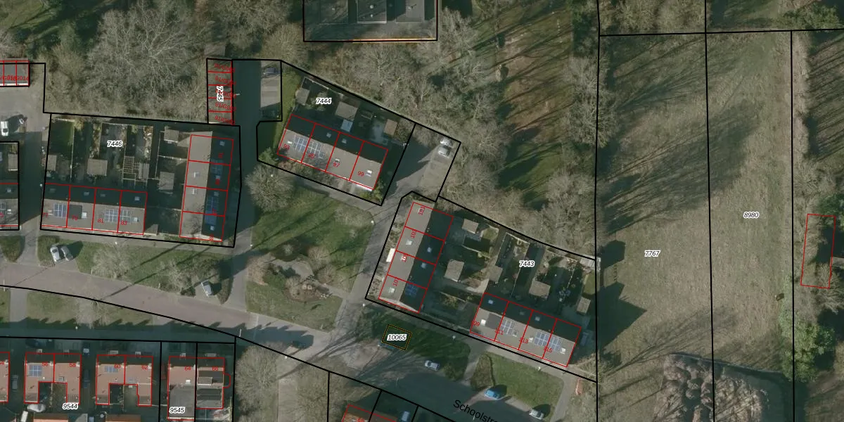 Het perceel waarop Schoolstraat 101 staat heeft een oppervlakte van 1460 m². Dit is een zeer groot perceel. De perceeloppervlakte wordt geregistreerd door het Kadaster. Gedetailleerde informatie over de maten van dit perceel kunt u vinden in het rapport Kadastrale kaart met maatvoering van Schoolstraat 101.