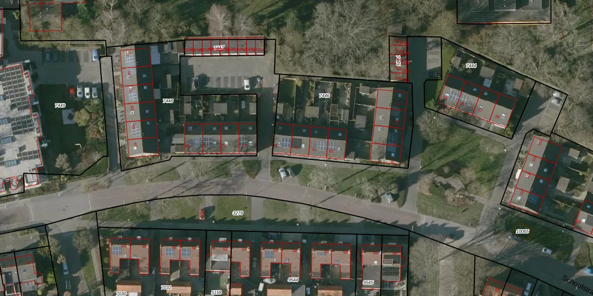 Schoolstraat 79 is gelegen op kadastraal perceel HSR00C7446. Deze kadastrale aanduiding is uniek en wordt gebruikt door het Kadaster om eigendomsrechten en andere zakelijke rechten vast te leggen. Het perceel maakt onderdeel uit van de kadastrale gemeente Halsteren.