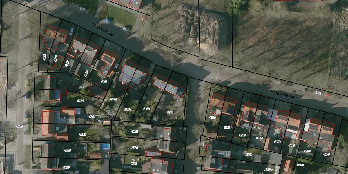 Gebruik de zoekbalk of klik op een perceel voor informatie over de adressen binnen dit perceel.