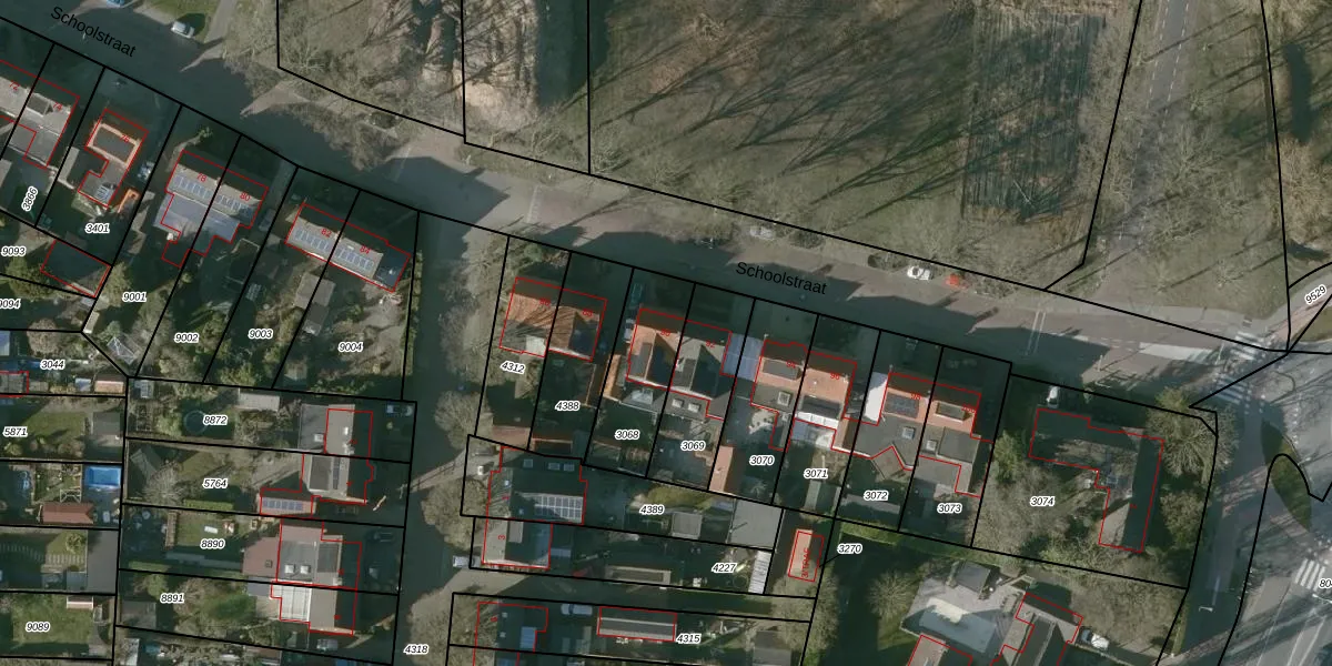 Schoolstraat 90 is gelegen op kadastraal perceel HSR00C3068. Deze kadastrale aanduiding is uniek en wordt gebruikt door het Kadaster om eigendomsrechten en andere zakelijke rechten vast te leggen. Het perceel maakt onderdeel uit van de kadastrale gemeente Halsteren.