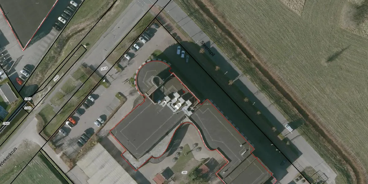 Het perceel waarop Steenspil 46 staat heeft een oppervlakte van 1,2 ha. Dit is een zeer groot perceel. De perceeloppervlakte wordt geregistreerd door het Kadaster. Gedetailleerde informatie over de maten van dit perceel kunt u vinden in het rapport Kadastrale kaart met maatvoering van Steenspil 46.