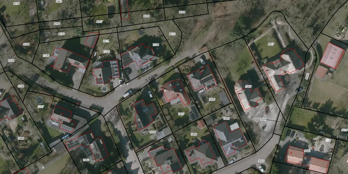Het perceel waarop 't Gilde 18 staat heeft een oppervlakte van 615 m². Dit is een groot perceel. De perceeloppervlakte wordt geregistreerd door het Kadaster. Gedetailleerde informatie over de maten van dit perceel kunt u vinden in het rapport Kadastrale kaart met maatvoering van 't Gilde 18.