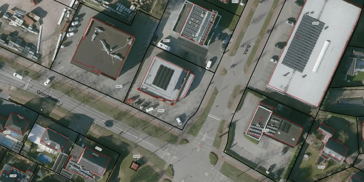 Vang 1 is gelegen op kadastraal perceel HSR00C8950. Deze kadastrale aanduiding is uniek en wordt gebruikt door het Kadaster om eigendomsrechten en andere zakelijke rechten vast te leggen. Het perceel maakt onderdeel uit van de kadastrale gemeente Halsteren.