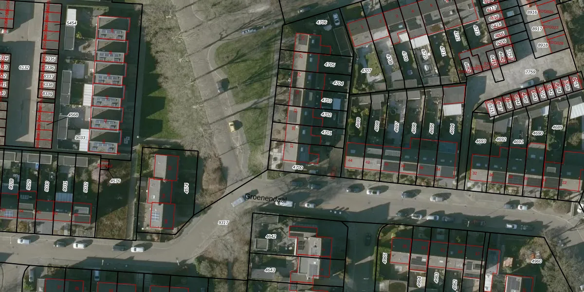 Gebruik de zoekbalk of klik op een perceel voor informatie over de adressen binnen dit perceel.