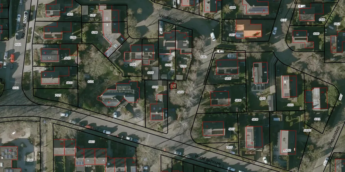 Verduinsbos 13-TRAF is gelegen op kadastraal perceel HSR00C5834. Deze kadastrale aanduiding is uniek en wordt gebruikt door het Kadaster om eigendomsrechten en andere zakelijke rechten vast te leggen. Het perceel maakt onderdeel uit van de kadastrale gemeente Halsteren.