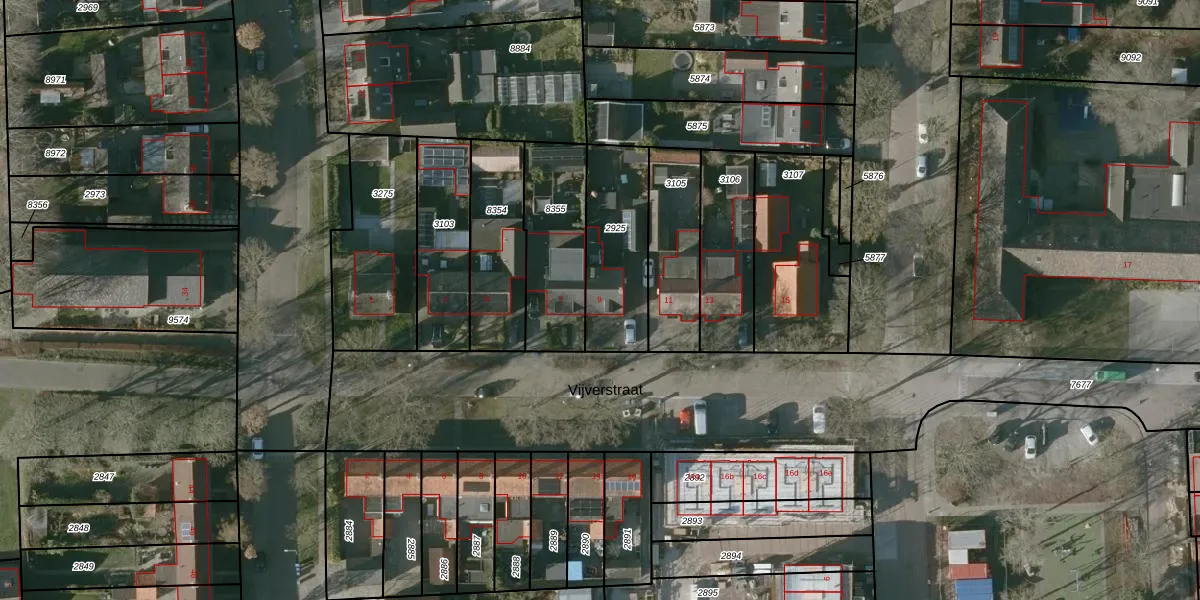 Het perceel waarop Vijverstraat 9 staat heeft een oppervlakte van 351 m². Dit is een groot perceel. De perceeloppervlakte wordt geregistreerd door het Kadaster. Gedetailleerde informatie over de maten van dit perceel kunt u vinden in het rapport Kadastrale kaart met maatvoering van Vijverstraat 9.