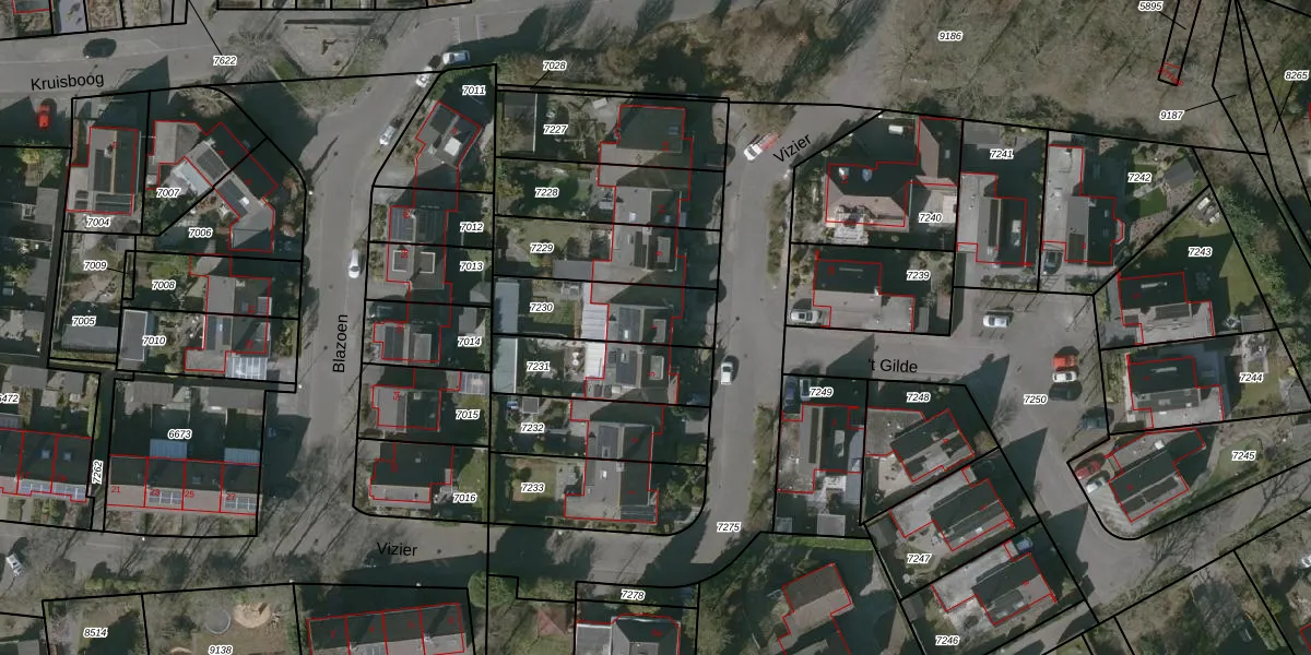 Het perceel waarop Vizier 7 staat heeft een oppervlakte van 307 m². Dit is een groot perceel. De perceeloppervlakte wordt geregistreerd door het Kadaster. Gedetailleerde informatie over de maten van dit perceel kunt u vinden in het rapport Kadastrale kaart met maatvoering van Vizier 7.