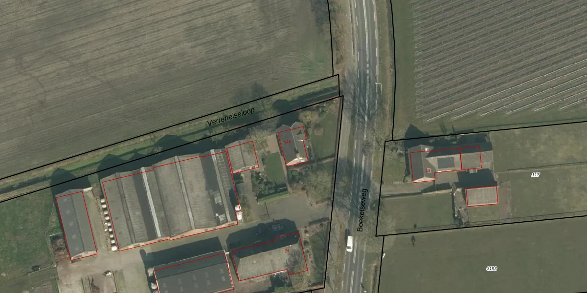 Het perceel waarop Boekelseweg 24-a staat heeft een oppervlakte van 1,5 ha. Dit is een zeer groot perceel. De perceeloppervlakte wordt geregistreerd door het Kadaster. Gedetailleerde informatie over de maten van dit perceel kunt u vinden in het rapport Kadastrale kaart met maatvoering van Boekelseweg 24-a.