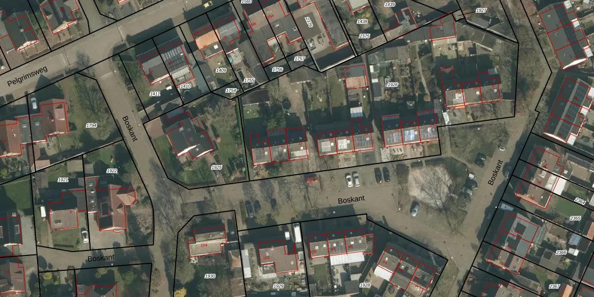 Het perceel waarop Boskant 12 staat heeft een oppervlakte van 3264 m². Dit is een zeer groot perceel. De perceeloppervlakte wordt geregistreerd door het Kadaster. Gedetailleerde informatie over de maten van dit perceel kunt u vinden in het rapport Kadastrale kaart met maatvoering van Boskant 12.