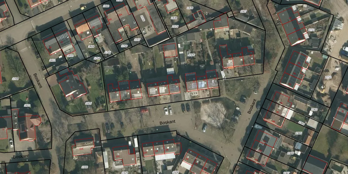 Het perceel waarop Boskant 18 staat heeft een oppervlakte van 3264 m². Dit is een zeer groot perceel. De perceeloppervlakte wordt geregistreerd door het Kadaster. Gedetailleerde informatie over de maten van dit perceel kunt u vinden in het rapport Kadastrale kaart met maatvoering van Boskant 18.