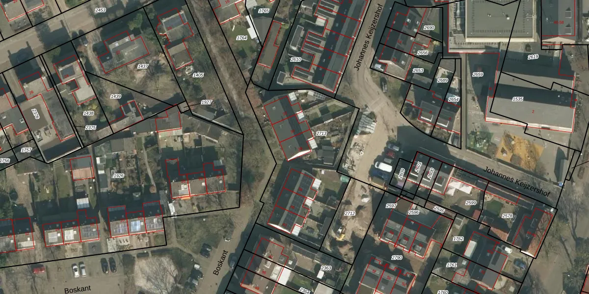 Het perceel waarop Boskant 36 staat heeft een oppervlakte van 1386 m². Dit is een zeer groot perceel. De perceeloppervlakte wordt geregistreerd door het Kadaster. Gedetailleerde informatie over de maten van dit perceel kunt u vinden in het rapport Kadastrale kaart met maatvoering van Boskant 36.