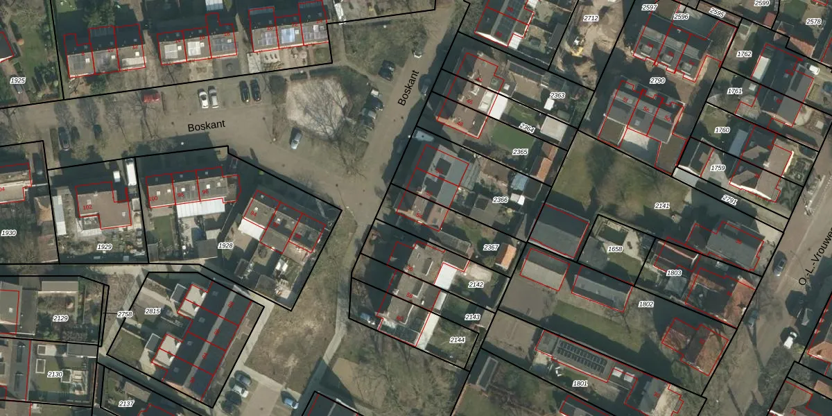 Het perceel waarop Boskant 54 staat heeft een oppervlakte van 330 m². Dit is een groot perceel. De perceeloppervlakte wordt geregistreerd door het Kadaster. Gedetailleerde informatie over de maten van dit perceel kunt u vinden in het rapport Kadastrale kaart met maatvoering van Boskant 54.