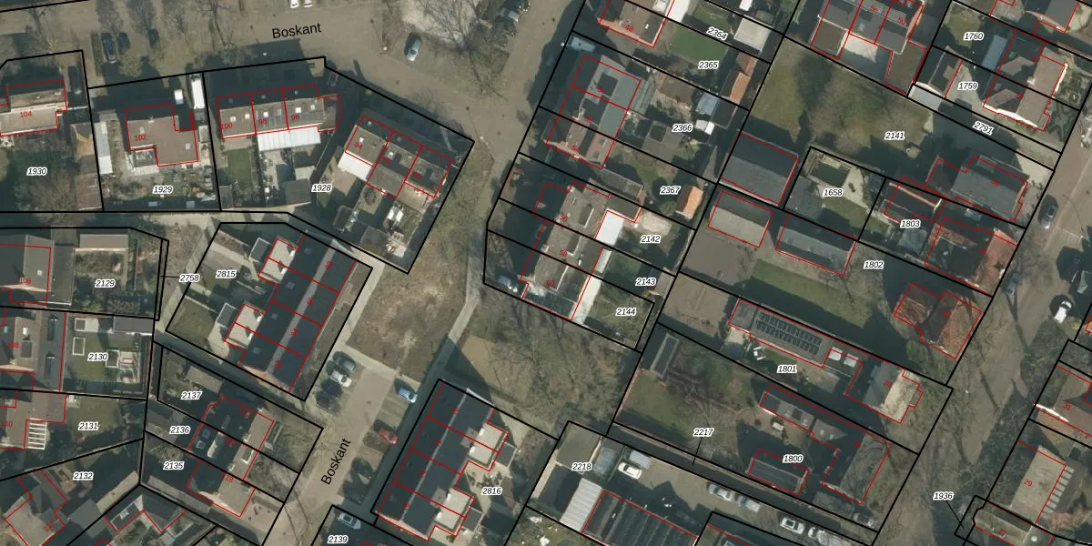 Het perceel waarop Boskant 60 staat heeft een oppervlakte van 295 m². Dit is een middelgroot perceel. De perceeloppervlakte wordt geregistreerd door het Kadaster. Gedetailleerde informatie over de maten van dit perceel kunt u vinden in het rapport Kadastrale kaart met maatvoering van Boskant 60.