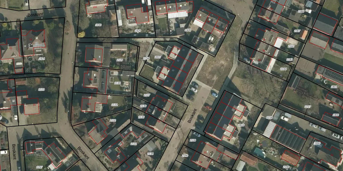 Het perceel waarop Boskant 82 staat heeft een oppervlakte van 752 m². Dit is een groot perceel. De perceeloppervlakte wordt geregistreerd door het Kadaster. Gedetailleerde informatie over de maten van dit perceel kunt u vinden in het rapport Kadastrale kaart met maatvoering van Boskant 82.
