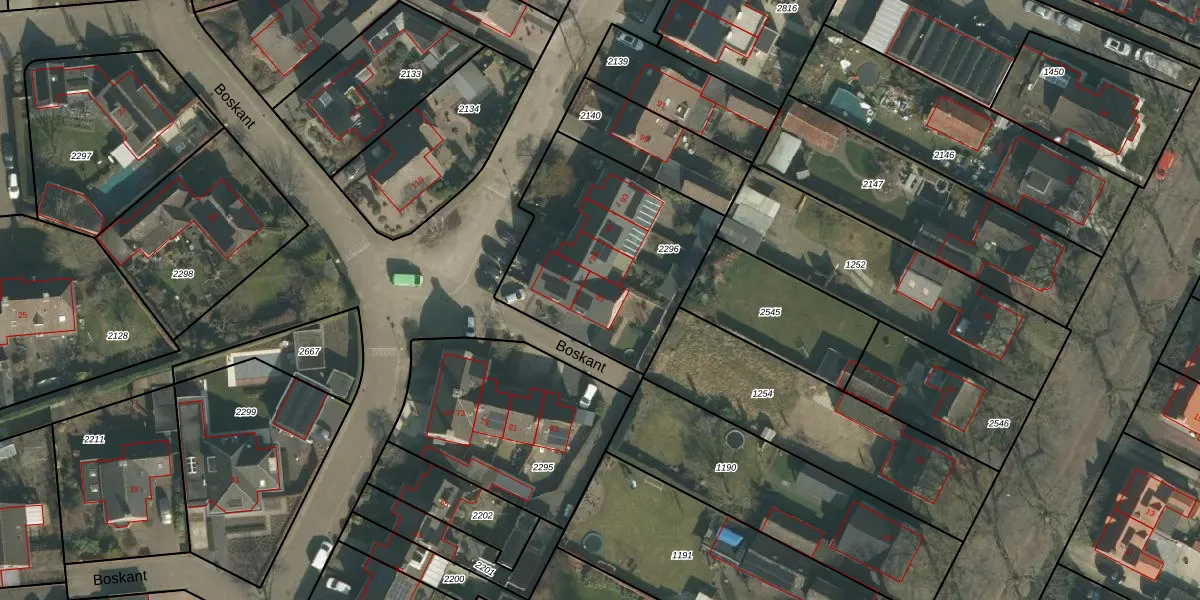 Het perceel waarop Boskant 85 staat heeft een oppervlakte van 884 m². Dit is een groot perceel. De perceeloppervlakte wordt geregistreerd door het Kadaster. Gedetailleerde informatie over de maten van dit perceel kunt u vinden in het rapport Kadastrale kaart met maatvoering van Boskant 85.