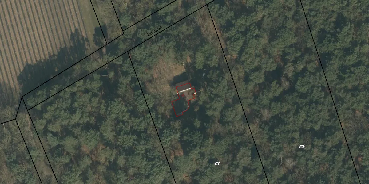 Het perceel waarop Boslaan 12 staat heeft een oppervlakte van 7670 m². Dit is een zeer groot perceel. De perceeloppervlakte wordt geregistreerd door het Kadaster. Gedetailleerde informatie over de maten van dit perceel kunt u vinden in het rapport Kadastrale kaart met maatvoering van Boslaan 12.