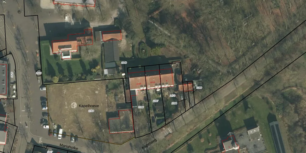 Kapelweg 12 is gelegen op kadastraal perceel GMT00B2287. Deze kadastrale aanduiding is uniek en wordt gebruikt door het Kadaster om eigendomsrechten en andere zakelijke rechten vast te leggen. Het perceel maakt onderdeel uit van de kadastrale gemeente Gemert.