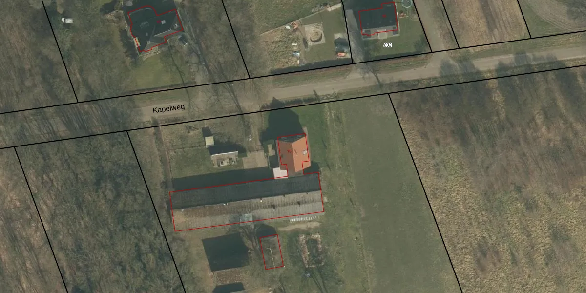 Het perceel waarop Kapelweg 75 staat heeft een oppervlakte van 1,0 ha. Dit is een zeer groot perceel. De perceeloppervlakte wordt geregistreerd door het Kadaster. Gedetailleerde informatie over de maten van dit perceel kunt u vinden in het rapport Kadastrale kaart met maatvoering van Kapelweg 75.