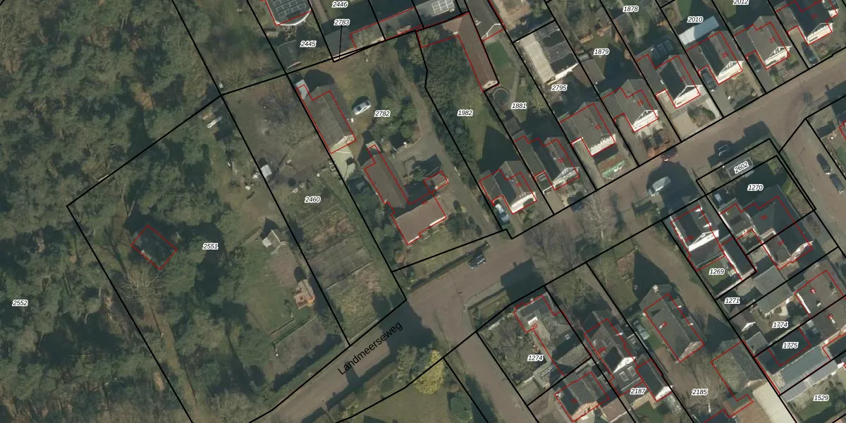 Het perceel waarop Landmeerseweg 41 staat heeft een oppervlakte van 1450 m². Dit is een zeer groot perceel. De perceeloppervlakte wordt geregistreerd door het Kadaster. Gedetailleerde informatie over de maten van dit perceel kunt u vinden in het rapport Kadastrale kaart met maatvoering van Landmeerseweg 41.