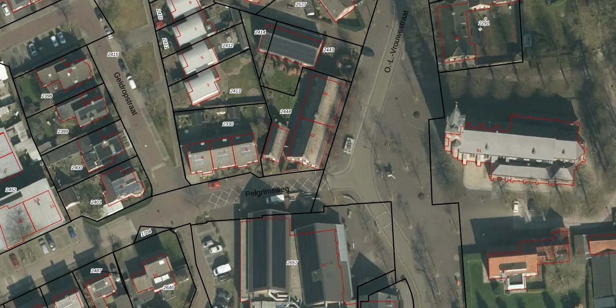Pelgrimsweg 1 is gelegen op kadastraal perceel GMT00B2444. Deze kadastrale aanduiding is uniek en wordt gebruikt door het Kadaster om eigendomsrechten en andere zakelijke rechten vast te leggen. Het perceel maakt onderdeel uit van de kadastrale gemeente Gemert.