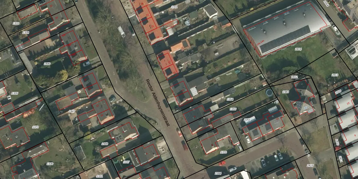 Rector Aldenhuysenstraat 13 is gelegen op kadastraal perceel GMT00B1701. Deze kadastrale aanduiding is uniek en wordt gebruikt door het Kadaster om eigendomsrechten en andere zakelijke rechten vast te leggen. Het perceel maakt onderdeel uit van de kadastrale gemeente Gemert.