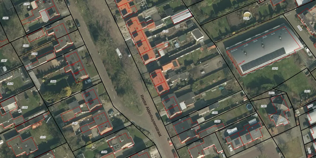 Het perceel waarop Rector Aldenhuysenstraat 17 staat heeft een oppervlakte van 4436 m². Dit is een zeer groot perceel. De perceeloppervlakte wordt geregistreerd door het Kadaster. Gedetailleerde informatie over de maten van dit perceel kunt u vinden in het rapport Kadastrale kaart met maatvoering van Rector Aldenhuysenstraat 17.