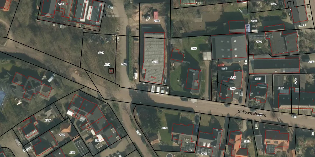 Strijbosscheweg 23 is gelegen op kadastraal perceel GMT00B2742. Deze kadastrale aanduiding is uniek en wordt gebruikt door het Kadaster om eigendomsrechten en andere zakelijke rechten vast te leggen. Het perceel maakt onderdeel uit van de kadastrale gemeente Gemert.