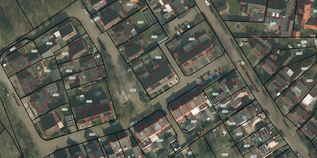 Het perceel waarop Varelaar 11 staat heeft een oppervlakte van 594 m². Dit is een groot perceel. De perceeloppervlakte wordt geregistreerd door het Kadaster. Gedetailleerde informatie over de maten van dit perceel kunt u vinden in het rapport Kadastrale kaart met maatvoering van Varelaar 11.