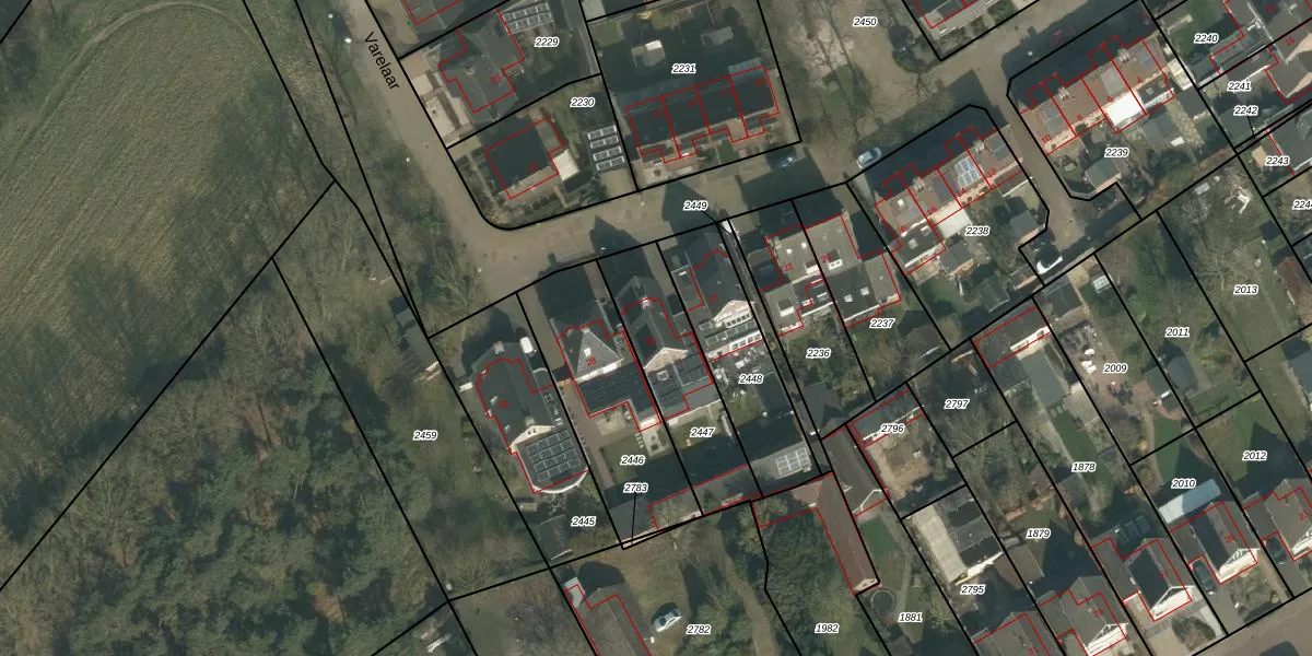 Het perceel waarop Varelaar 26 staat heeft een oppervlakte van 401 m². Dit is een groot perceel. De perceeloppervlakte wordt geregistreerd door het Kadaster. Gedetailleerde informatie over de maten van dit perceel kunt u vinden in het rapport Kadastrale kaart met maatvoering van Varelaar 26.