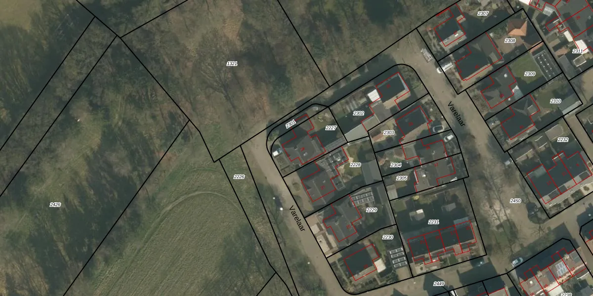 Het perceel waarop Varelaar 29 staat heeft een oppervlakte van 319 m². Dit is een groot perceel. De perceeloppervlakte wordt geregistreerd door het Kadaster. Gedetailleerde informatie over de maten van dit perceel kunt u vinden in het rapport Kadastrale kaart met maatvoering van Varelaar 29.